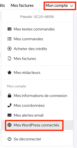 Pour cela, il faut cliquer sur "Mon compte", en haut à droite de votre écran, puis sur "Mes WordPress connectés".